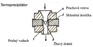 Termoprecipitátor pracuje na principu termodifuze prachu zachycujícího se na sklíčkách. 20 až 400 cm3 prašného vzduchu se vede rychlostí 5 až 6 cm3.s-1 kolem rozžhaveného drátku. Vyhodnocení je jako u suchých konimetrů. Přesnost měření termoprecipitátorem je velmi vysoká.