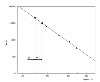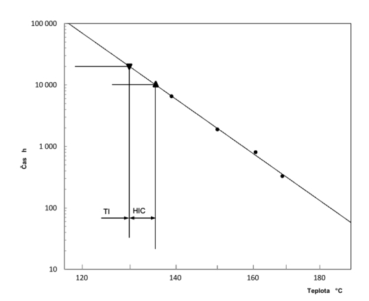 Hodnota HIC se zjišťuje z grafu tepelné odolnosti. Jedná se o graf, ve kterém zakreslují výsledky a měření při zkoušce tepelné odolnosti jako logaritmus doby pro dosažení specifikovaného koncového bodu oproti převrácené hodnotě termodynamické (absolutní) zkušební teploty.